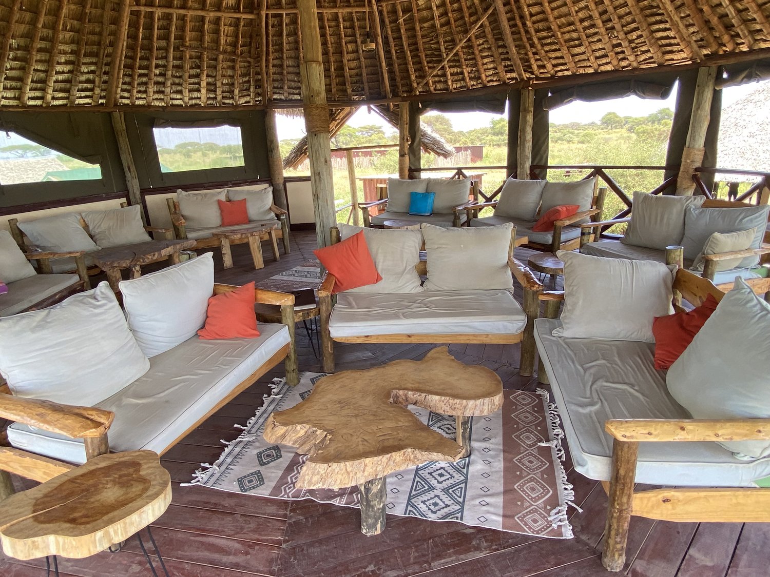 They have a beautiful lounge with an elevated platform for spectacular view of Mt. Kilimanjaro and a busy watering hole nearby. Elephants, zebras, wildebeest, buffalo, giraffes and many other animals of the African savannah troop to the watering hole all day long for water. The peaceful surroundings of property make you want to pause, take a deep breath and enjoy the tranquility of this peaceful retreat. The camp was built with nature in mind and is a perfect sanctuary for nature lovers.