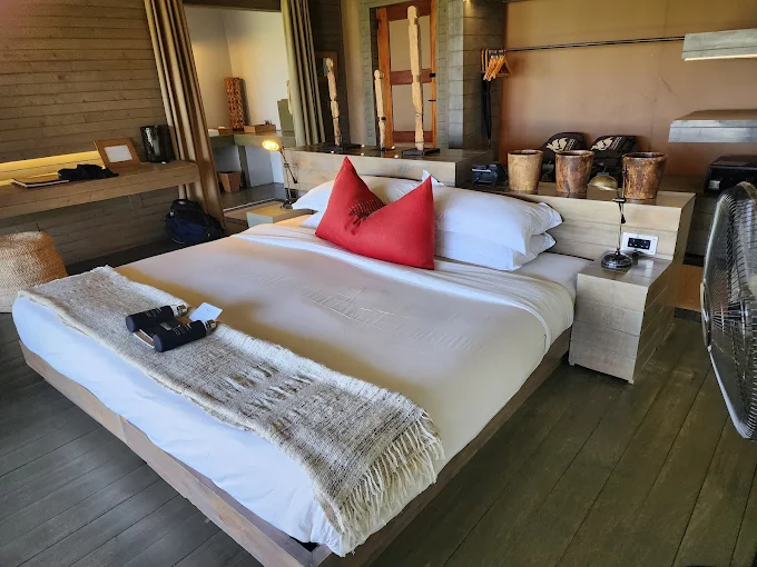 Massive windows in the spacious guest areas invite the Mara inside and incorporate split-level spaces where guests can relax and unwind. Pick and choose delicious ingredients from the organic garden and enjoy convivial conversations in the inviting interactive kitchen. Treat yourself to holistic healing in the massage tent, indulge in a rejuvenating treatment or browse the Safari Shop, offering the finest Kenyan handicrafts. The rim-flow swimming pool, literally on the edge of the Mara, boasts one of the world’s most extraordinary views.