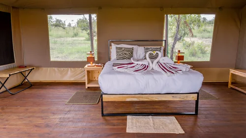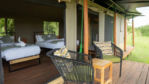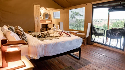 Style & Vibe: A blend of canvas luxury with Maasai-inspired décor, natural wood finishes, and panoramic views