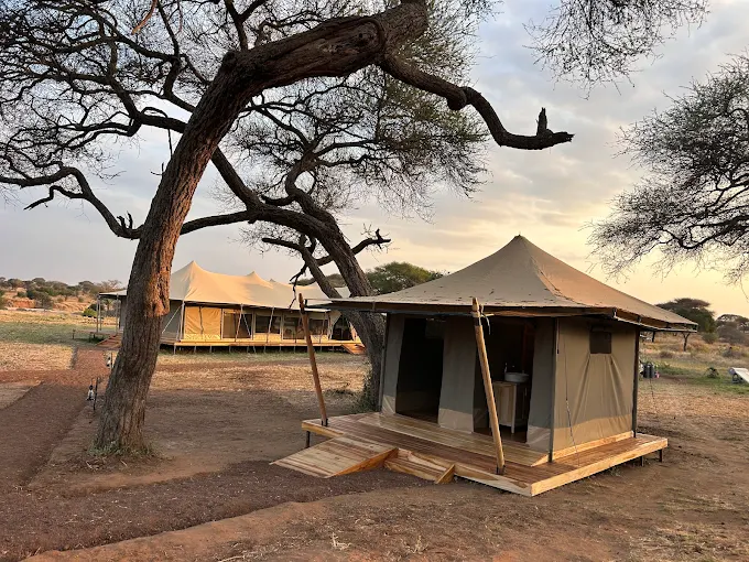 Nestled among ancient baobab trees and overlooking a seasonal riverbed teeming with wildlife, Conserve Safari Tarangire offers an intimate, luxury tented camp experience in the heart of Tarangire National Park. Designed to blend seamlessly with its natural surroundings, our camp allows you to witness elephants ambling across the riverbank, giraffes grazing under the acacias, and colorful birdlife flitting between branches, all from the comfort of your private deck. Each suite accommodates up to three adults or two adults with two children. This makes it perfect for couples, families, or small groups seeking a personalized Tarangire safari experience.