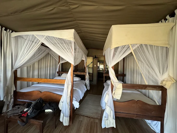 Rooms vary in sizes with single beds for individuals, double beds for sharing and triple rooms, All rooms are unsuited and have their private balcony .The offerings include guided game walks that bring you close to the wildlife, enhancing your safari experience. Indulge in exhilarating game drives, bush black-tie dinners, and champagne breakfasts on the plains.