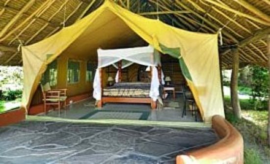 The camp comprises of 25 thatched tents perfect for Kenya wildlife Tours stay, these thatched tents consists of a ray of safari tones got from natural woods, wrought iron and crisp cotton to give you out a very luxury vibe. Each tent comprises of 4 poster beds draped in mosquito nets, private verandas and en-suite bathrooms with flush toilets and showers with hot and cold running water. The en-suite bathroom is separated from the bedroom by canvas screen and the whole tent opens to stone patios edged with curving low adobe walls and comfortable out door chairs positioned facing the scenic views of the park.