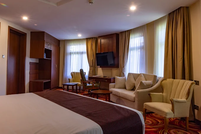 The Hotel has 30 rooms which include a Presidential suite, Garden Suites, Executive rooms and Deluxe rooms. In addition to accommodation, the hotel offers Executive boardrooms as well as a Conference facility that can host up to 150 people.Other facilities in the Hotel include two restaurants, a pool bar, a well-equipped gymnasium, a spa, a swimming pool and a Business Centre.