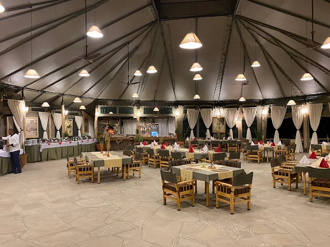 Dine in our open-terraced restaurant overlooking glorious sunrises and the sunsets. The camp chef will pamper you with fine cuisines. Fruits and vegetables are served fresh as they are picked from the very own farm, Special meal requirements are met on request (e.g. vegetarian), The superbly designed bar is stocked with imported and local liqueurs along with chilled beers, sodas, and fresh juices. A fireplace adds to the ambience and comfort on chilly nights.