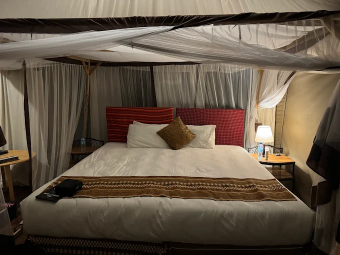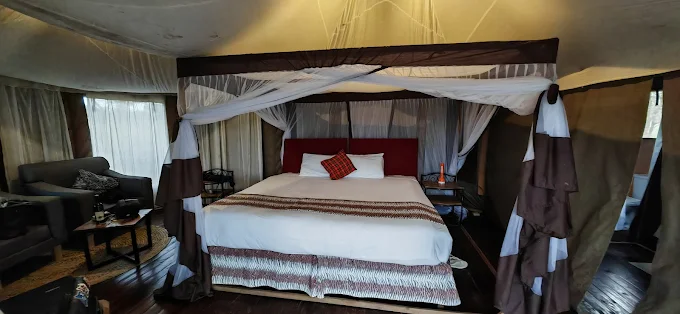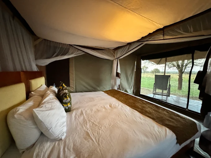 Tents have outdoor verandahs and a rooftop providing shade sitting area overlooking the spectacular view over the serengeti plains, wildlife roeaming around and surrounding the area. Tent are equipped with excellent clean and washed beddings with queen and king sized beds. The camp has cracking fireplace where you can relax and share stories and experiences of the safaris.