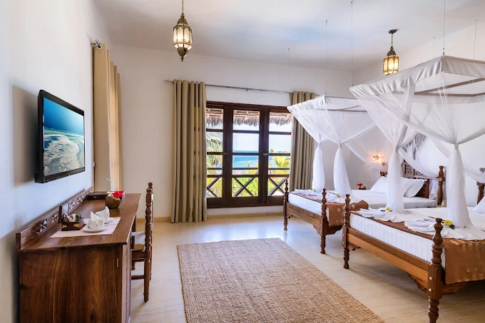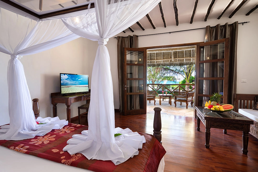Next Paradise Boutique Resort sits on one of the most beautiful white sandy beaches of Zanzibar, facing directly the Indian Ocean and protected by the coral reef which is about one kilometer away. Located only 45 minutes drive from Stone Town and 30 minutes from Nungwi and Kendwa, (the beaches of north) . It is perfect place to organize excursions, spice tours, swim with dolphins, big game fishing, kite surfing , diving and snorkeling to Mnemba atoll. The charming small hotel is well known because of its sober elegance, the excellent food and especially for its intimate and quiet atmosphere.