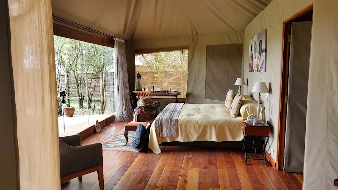 Sala’ Camp is a permanent safari tented camp on the Masai Mara. There are three room types across the 7 luxury tents. Sala’s Double Tents include Tent 1 which is also known as the Keekorok Honeymoon Safari Tent and Tents 4, 5 and 6 are spread out along the riverbank next to the Sala’s Honeymoon Tent which is Tent 7. Whilst they are all subtly different in design, they each have the same amenities and tranquil natural surroundings with views across the Sand River and into the Serengeti. The seclusion, sumptuous nature and incredible outlook of all double tents make them the perfect choice for a honeymoon safari. Floor-to-ceiling glass doors lead out onto either a patio or a wooden deck, with space for intimate star-lit dining if desired. Private plunge pools and wooden decks allow for total relaxation in the soothing green surroundings of nature.