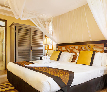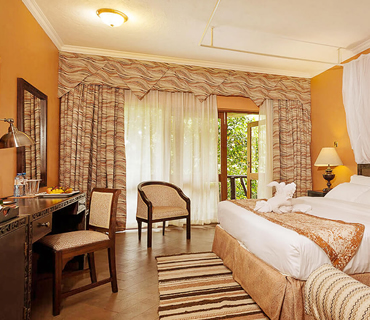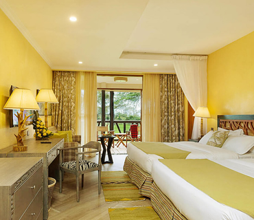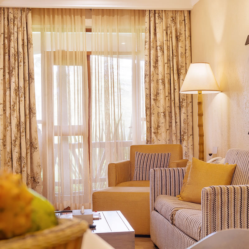 Located near the main block, the luxurious two-bedroom suites feature a state-of-the-art lounge, an in-room private safe, and an extra TV in the living room. Each room is en-suite and fitted with executive king beds suitable for a family set up. Guests enjoy relaxing views from the balcony facing the lush gardens.