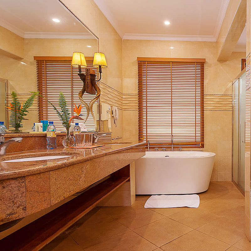 The business deluxe rooms are spacious enough and set to great comfort that meets guests’ expectations. The rooms are fitted with a state-of-the-art bathroom with both shower and bathtub options, coffee/ tea maker and flat screen TV. Guests can choose to stay at the wings near the swimming pool orat the far end of the grounds. This category has the interconnecting option and a balcony overlooking the lush gardens