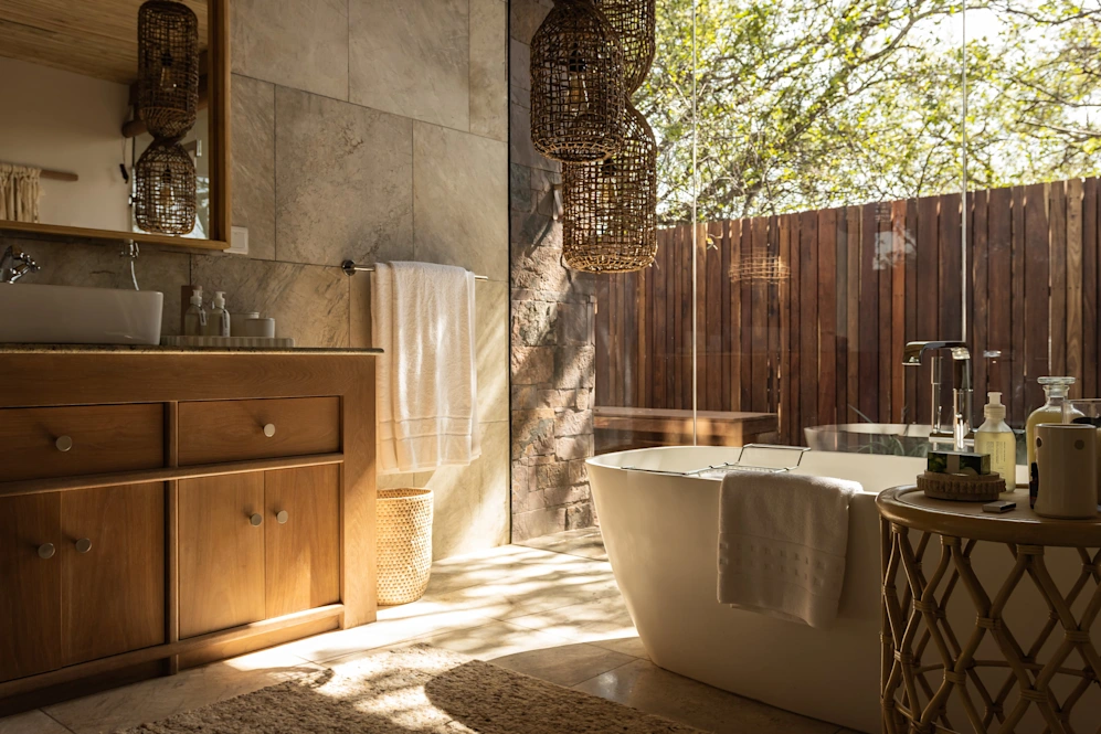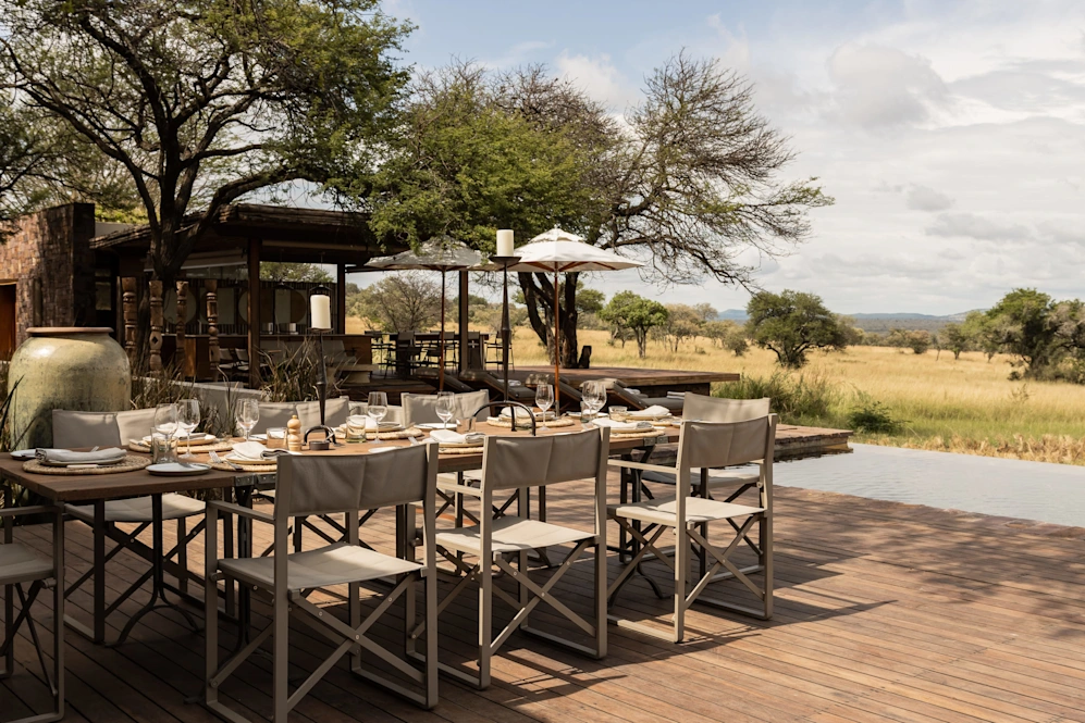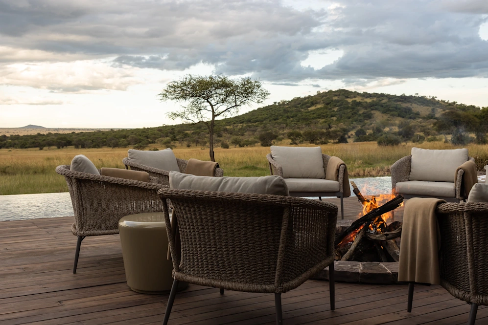 Serengeti House offers a full staff complement and private access to a pristine wilderness along the annual wildebeest migration route. It has four suites – each with generous bathrooms, outdoor showers, and private terraces – that share a central living space. Designed with connection and relaxation in mind, it embodies an inherent sense of homely comfort, while celebrating contemporary African design. Up to 8 guests can feel at home at Serengeti House, with 2 suites in the main house and 2 garden suites; and daily onsite staff and management.