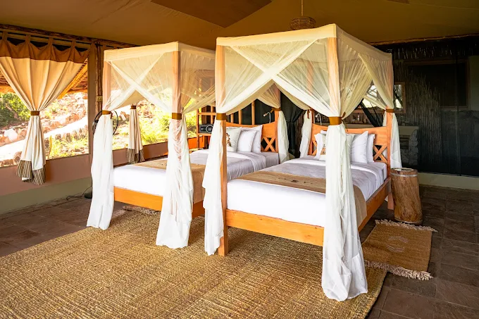 Soroi Cheetah Tented Camp is a haven for nature enthusiasts seeking an authentic safari experience in the heart of Kenya’s thriving wilderness. Nestled beneath Soroi Lion Bluff Lodge and Soroi Leopard Lair on the gentle lower slopes of the same hill, the campsite offers a unique perspective of the breathtaking Lumo Conservancy landscape bordering Tsavo West. Soroi Cheetah-tented camp has six twin tents and 2 family tents, each equipped with cosy twin or double beds and a private en-suite bathroom.