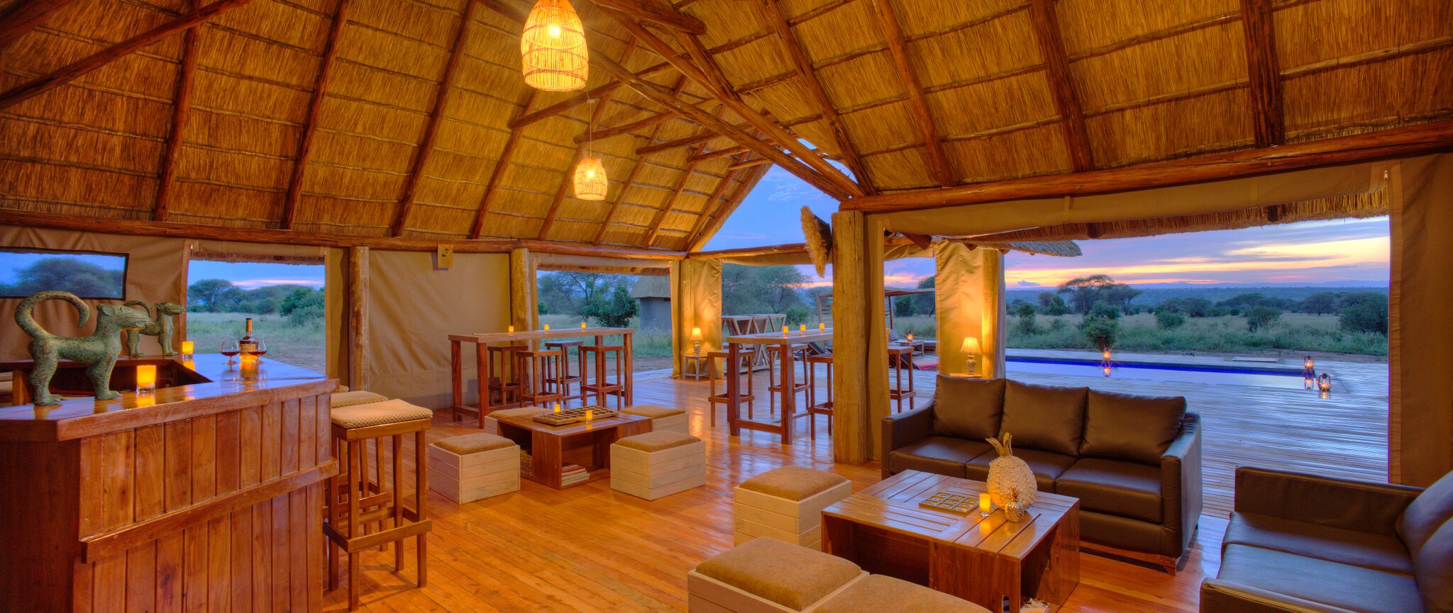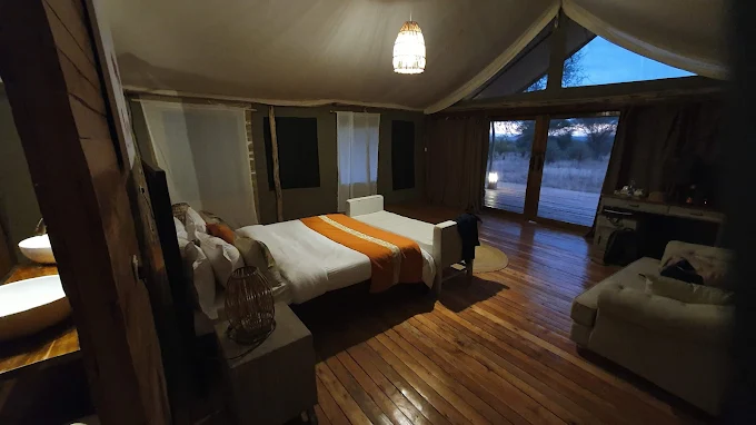 Netted windows allow the breeze to flow through while maintaining privacy with light, billowing curtains. By night, lantern-lit pathways and a mix of solar and beeswax candles create an enchanting atmosphere, perfect for unwinding after a day of safari adventures. Enjoy meals in the thatched dining area, by the pool, or under the expansive African sky, with cuisine crafted from fresh, local ingredients.Whether relaxing by the campfire with a sundowner or marveling at the wildlife from your balcony, Tarangire Ndovu Tented Lodge offers an intimate and responsible way to experience Tarangire’s extraordinary landscapes.