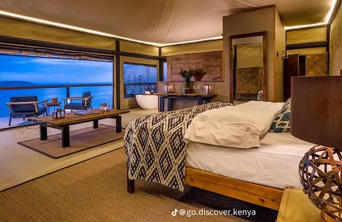 Perched at the top of a 100-metre-high rock face sits Lake Nakuru’s newest and most innovative addition – The Cliff – a 10-room luxury camp. Luxurious tents at the cliff’s edge face the lake, allowing guests 180-degree views of the panoramic paradise while maintaining privacy. Each tent is very spacious, with a freestanding bath looking outwards. While the exterior environment at The Cliff is purely African, the room interiors boast chic international design, achieving the understated style of a modern boutique hotel within a tented camp.